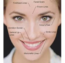 Facial movement lines: These lines (often known as "laugh lines" and "worry lines") become more visible as the skin loses its elasticity (in your 40's or 50's). The lines may be horizontal on the forehead, vertical above the nose, or curved on the temples, upper cheeks, and around the mouth and eyes.